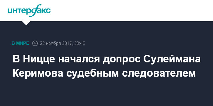 Москва. 22 ноября. INTERFAX.RU - Российского сенатора Сулеймана Керимова, задержанного в Ницце, в среду вечером опрашивает судебный следователь, сообщает агентство Bloomberg со ссылкой на прокурора Ниццы.