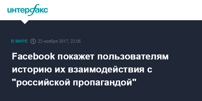 Facebook покажет пользователям историю их взаимодействия с "российской пропагандой"