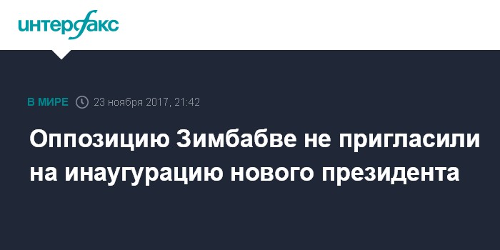 Москва. 23 ноября. INTERFAX.RU - В зимбабвийской оппозиционной партии "Движение за демократические перемены" (MDC-T) заявили, что ее представителей не пригласили на инаугурацию нового президента Зимбабве Эммерсона Мнангагвы, сообщает в четверг агентство AP.