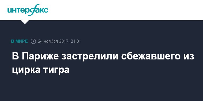 Москва. 24 ноября. INTERFAX.RU - Тигр сбежал из передвижного цирка в 15-м округе Париже, сообщает в пятницу газета Le Figaro.