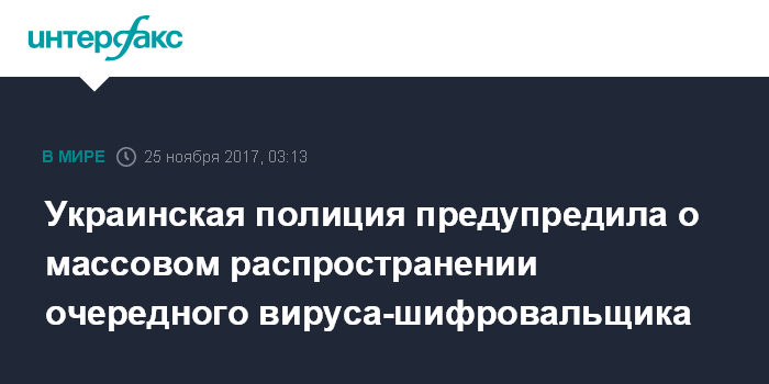 Украинская полиция предупредила о массовом распространении очередного вируса-шифровальщика