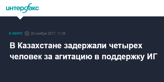 Москва. 25 ноября. INTERFAX.RU - Сотрудники Комитета нацбезопасности (КНБ) Казахстана задержали четверых жителей Актобе (административный центр Актюбинской области), подозреваемых в агитации в поддержку террористической организации ИГИЛ (ДАИШ, запрещена в ИФ), сообщила пресс-служба КНБ.