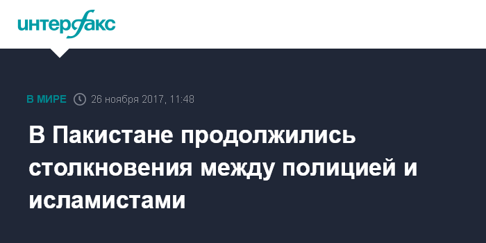 Москва. 26 ноября. INTERFAX.RU - В воскресенье в Пакистане продолжились ожесточенные столкновения между активистами исламской партии и силами правопорядка, сообщают мировые СМИ.