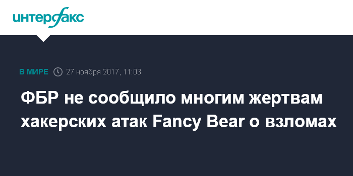 Москва. 27 ноября. INTERFAX.RU - ФБР за последний год не сообщило многим американским госслужащим о том, что они стали жертвами атаки хакеров Fancy Bear, сообщает в понедельник агентство АР.
