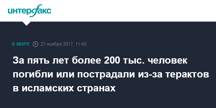 За пять лет более 200 тыс. человек погибли или пострадали из-за терактов в исламских странах