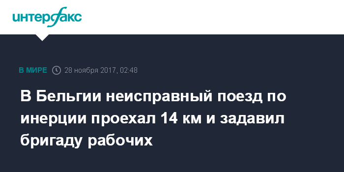 В Бельгии неисправный поезд по инерции проехал 14 км и задавил бригаду рабочих