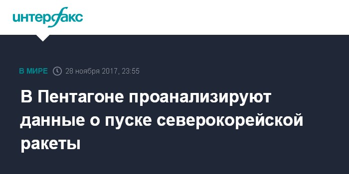 Москва. 28 ноября. INTERFAX.RU - Пентагон зафиксировал пуск и отследил полет баллистической ракеты, запущенной ранее с территории КНДР, сообщил во вторник представитель американского оборонного ведомства полковник Роберт Мэннинг.