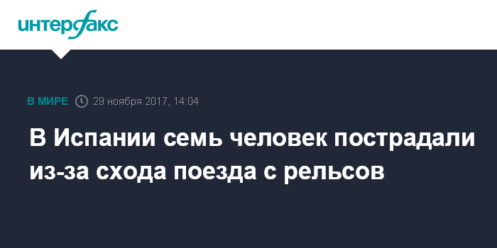Москва. 29 ноября. INTERFAX.RU - Пассажирский поезд сошел с рельсов на маршруте Малага-Севилья в Испании, сообщают местные СМИ со ссылкой на экстренные службы области Андалусия.