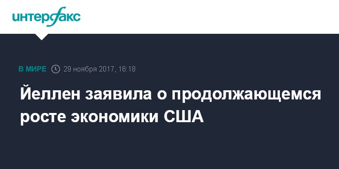 Москва. 29 ноября. INTERFAX.RU - Экономический подъем в США становится все более масштабным, заявила председатель Федеральной резервной системы (ФРС) Джанет Йеллен, выступая в объединенном экономическом комитете Конгресса США.
