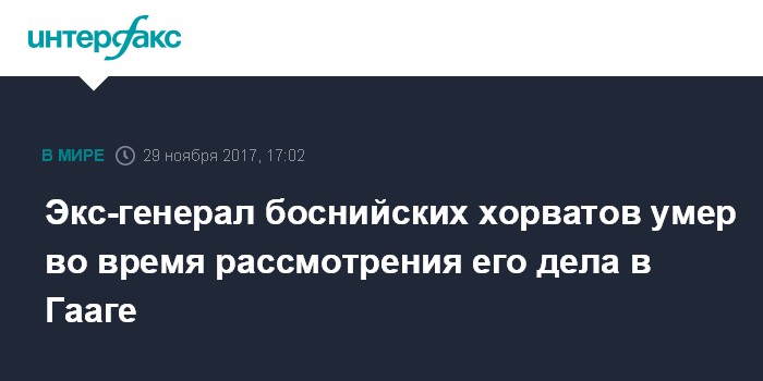 Экс-генерал боснийских хорватов умер во время рассмотрения его дела в Гааге