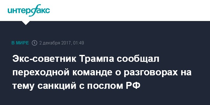 Экс-советник Трампа сообщал переходной команде о разговорах на тему санкций с послом РФ