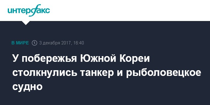 У побережья Южной Кореи столкнулись танкер и рыболовецкое судно