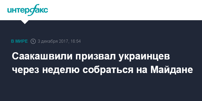 Москва. 3 декабря. INTERFAX.RU - Лидер партии "Рух новых сил", экс-президент Грузии Михаил Саакашвили призывает украинцев собраться в следующее воскресенье на площади Независимости в Киеве, если власть на текущей неделе не обеспечит принятие в парламенте закона об импичменте президента и создание Антикоррупционного суда.