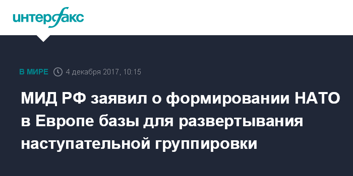 МИД РФ заявил о формировании НАТО в Европе базы для развертывания наступательной группировки