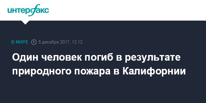 Один человек погиб в результате природного пожара в Калифорнии