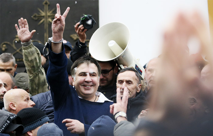 5 декабря украинские силовики пришли с обыском в квартиру экс-президента Грузии в Киеве. Сам Саакашвили поднялся на крышу 8-этажного дома, откуда обратился к соратникам. Сотрудники правоохранительных органов увели его с крыши и задержали в рамках расследования дела по статье УК Украины "Содействие участникам преступных организаций и сокрытие их преступной деятельности". Бывшего губернатора Одесской области посадили в машину, но автомобиль был блокирован сторонниками Саакашвили. Долгое время они не давали автобусу с задержанным политиком выехать с улицы, затем заблокировали машину на ул.Трехсвятительской.