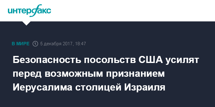 Безопасность посольств США усилят перед возможным признанием Иерусалима столицей Израиля