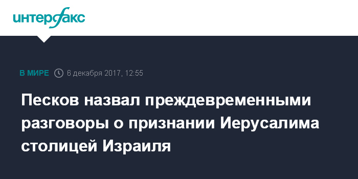 Песков назвал преждевременными разговоры о признании Иерусалима столицей Израиля