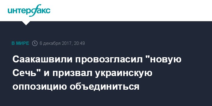 Саакашвили провозгласил "новую Сечь" и призвал украинскую оппозицию объединиться