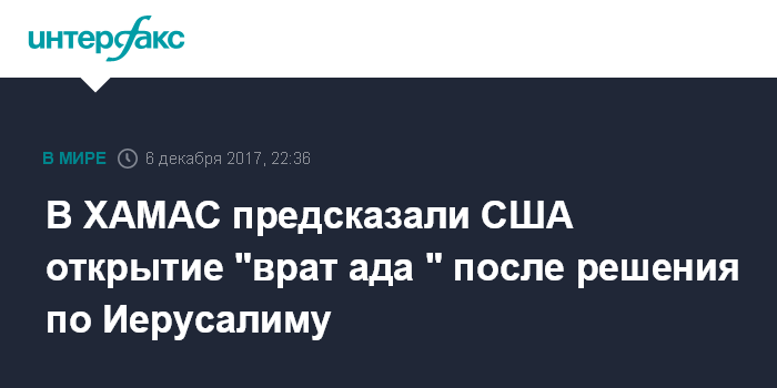 В ХАМАС предсказали США открытие "врат ада " после решения по Иерусалиму