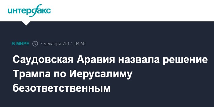 Саудовская Аравия назвала решение Трампа по Иерусалиму безответственным
