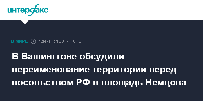 В Вашингтоне обсудили переименование территории перед посольством РФ в площадь Немцова