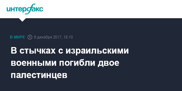 Москва. 8 декабря. INTERFAX.RU - Двое палестинцев погибли в результате стычек с армией Израиля вблизи границы сектора Газа. Об этом сообщает в пятницу телеканал Sky News со ссылкой на министерство здравоохранения Палестины.