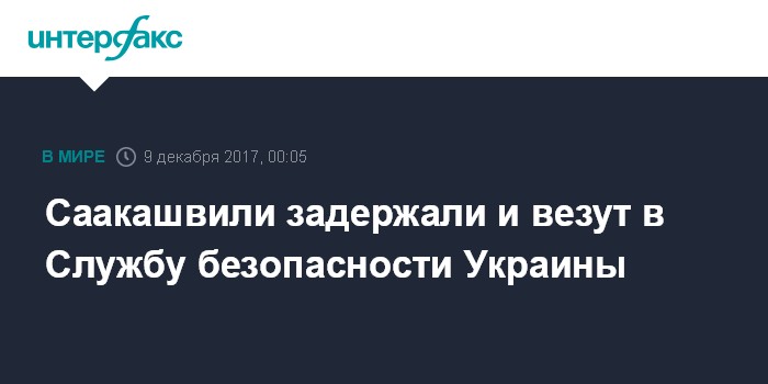 Москва. 9 декабря. INTERFAX.RU - Лидера украинской партии "Рух новых сил", экс-президента Грузии Михаила Саакашвили задержали и везут в Управление Службы безопасности Украины (СБУ) в Киеве.