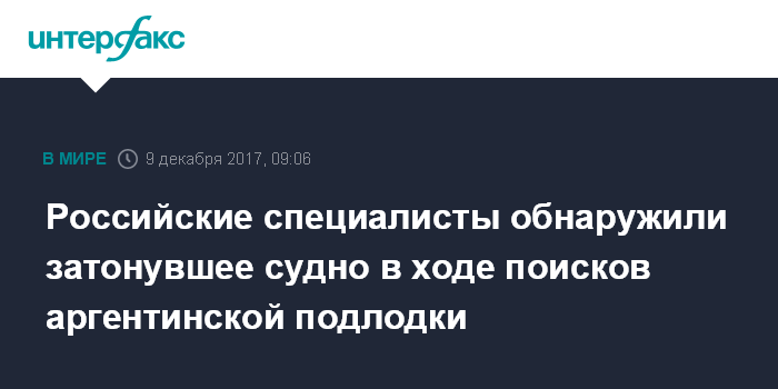 Российские специалисты обнаружили затонувшее судно в ходе поисков аргентинской подлодки