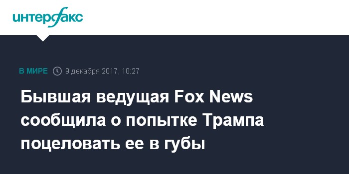 Москва. 9 декабря. INTERFAX.RU - Экс-ведущая американского телеканала Fox News Джульет Хадди рассказала, что президент США Дональд Трамп около 10 лет назад пытался поцеловать ее в губы, сообщило издание The Hill. По ее словам, это произошло "в 2005 или в 2006 году" в небоскребе "Трамп-тауэр".