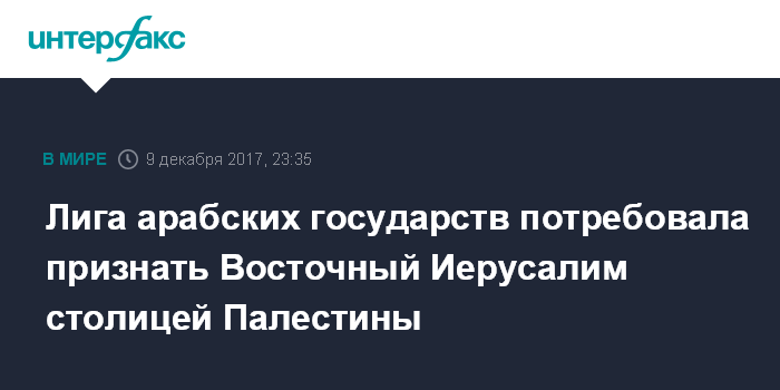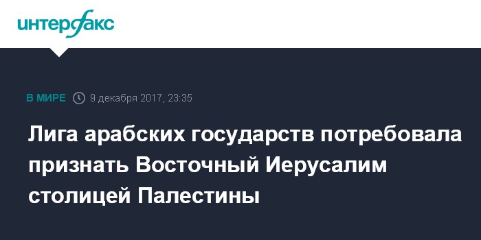 Лига арабских государств потребовала признать Восточный Иерусалим столицей Палестины
