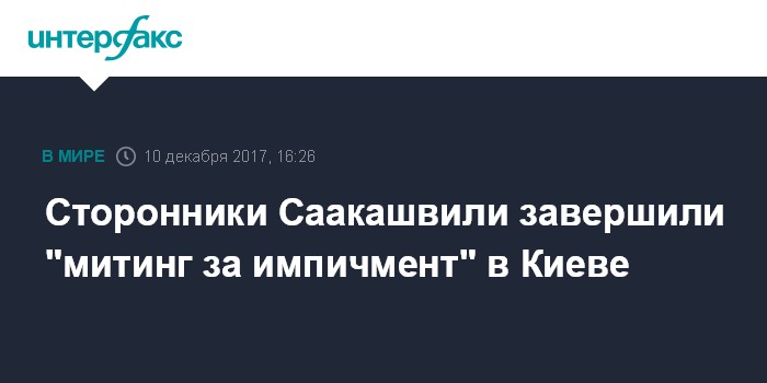Москва. 10 декабря. INTERFAX.RU - Митинг сторонников лидера партии "Рух новых сил", экс-главы администрации Одесской области, бывшего президента Грузии Михаила Саакашвили завершился в центре Киева.