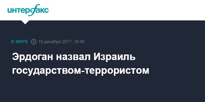 Москва. 10 декабря. INTERFAX.RU - Президент Турции Реджеп Тайип Эрдоган жестко раскритиковал Израиль, назвав его государством-террористом, сообщает Hurriyet.