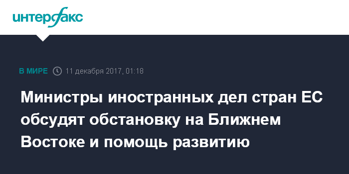 Министры иностранных дел стран ЕС обсудят обстановку на Ближнем Востоке и помощь развитию