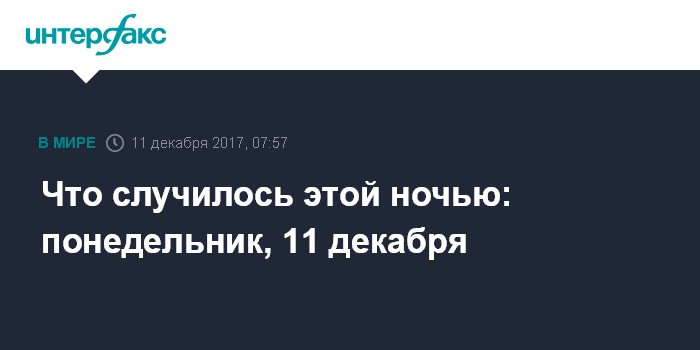 Москва. 11 декабря. INTERFAX.RU - Краткая сводка событий, произошедших к утру: