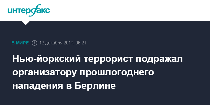 Нью-йоркский террорист подражал организатору прошлогоднего нападения в Берлине