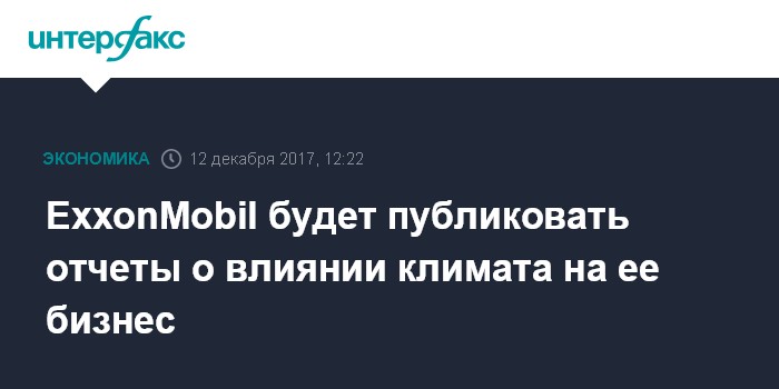 Москва. 12 декабря. INTERFAX.RU - Американская нефтегазовая ExxonMobil начнет публиковать отчеты о возможном влиянии климатической политики на ее бизнес в ответ на требования инвесторов улучшить систему раскрытия рисков, с которыми сталкивается компания.