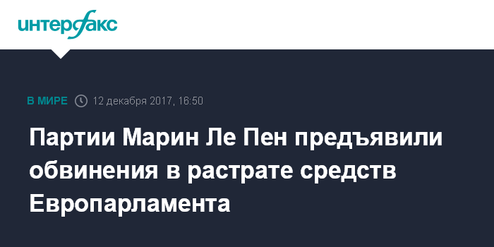 В июне 2017 г. лидеру французских ультраправых Марин Ле Пен предъявили обвинения в злоупотреблении средствами Европарламента.