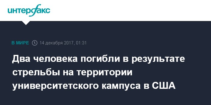 Москва. 14 декабря. INTERFAX.RU - По меньшей мере два человека погибли в результате стрельбы на территории кампуса "Penn State Beaver" университета американского штата Пенсильвания, передает телеканал CBS.