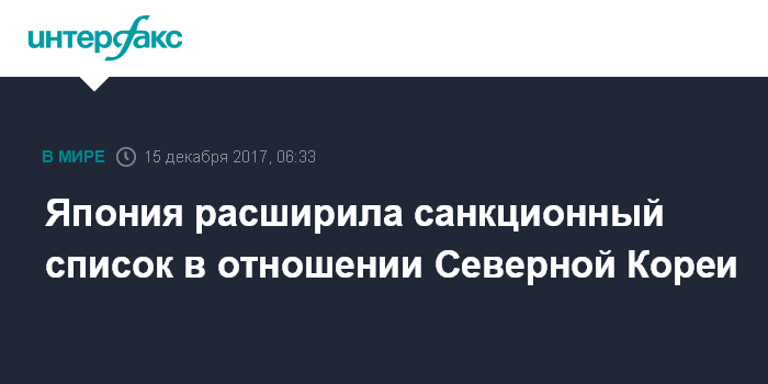 Москва. 15 декабря. INTERFAX.RU - Власти Японии в одностороннем порядке расширили санкционный список в отношении предприятий и физических лиц КНДР, сообщило японское министерство иностранных дел в пятницу.