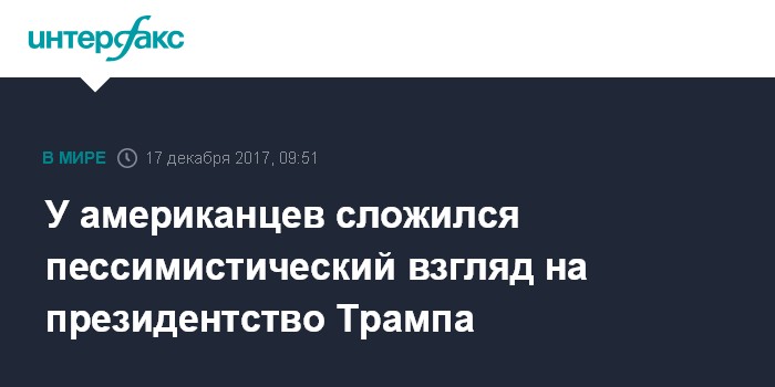 В целом, свидетельствуют данные опроса, к концу 2017 года у американцев складывается пессимистический взгляд на президентство Трампа.