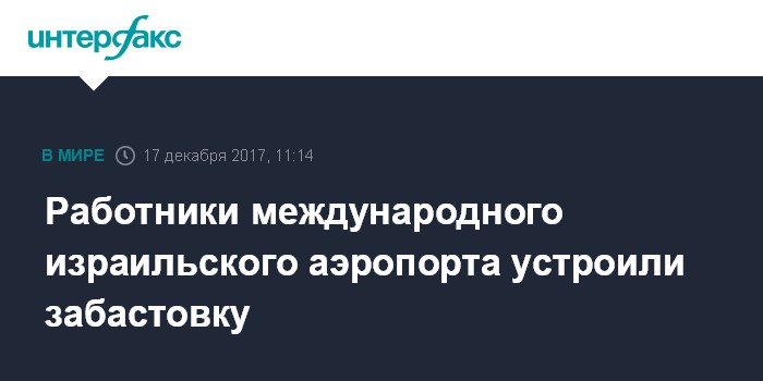 Москва. 17 декабря. INTERFAX.RU - Забастовка проводится в воскресенье в израильском международном аэропорту имени Бен-Гуриона по призыву влиятельного местного профсоюза "Гистадрут".