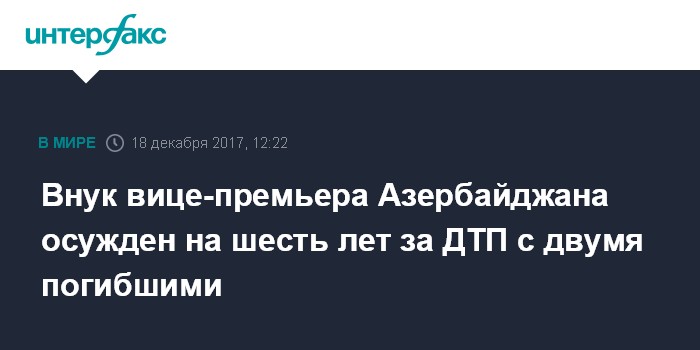 Он приговорен к тюремному заключению по статьям 263.3 (нарушение правил дорожного движения, повлекшее за собой смерть двух и более человек) и 264 (побег с места происшествия) УК Азербайджана.