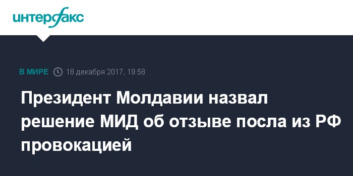 Президент Молдавии назвал решение МИД об отзыве посла из РФ провокацией