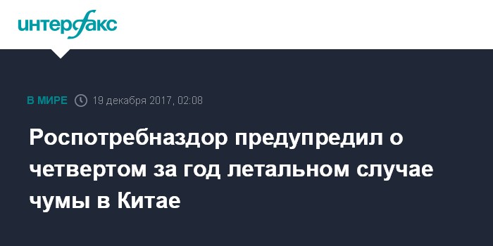 Москва. 19 декабря. INTERFAX.RU - Роспотребнадзор предупредил россиян о четвертом в этом году летальном случае чумы в одной из провинций Китая и призывает учитывать данную информацию при планировании поездок в эту страну.