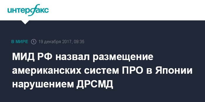 МИД РФ назвал размещение американских систем ПРО в Японии нарушением ДРСМД