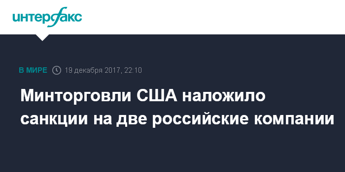 Минторговли США наложило санкции на две российские компании