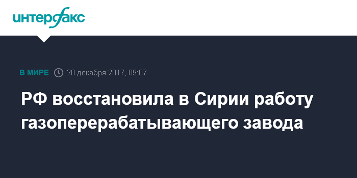 РФ восстановила в Сирии работу газоперерабатывающего завода