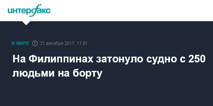 Москва. 21 декабря. INTERFAX.RU - Судно, на борту которого находился 251 человек, перевернулось и затонуло у берегов провинции Кесон в восточной части Филиппин, сообщила в четверг британская газета The Independent.