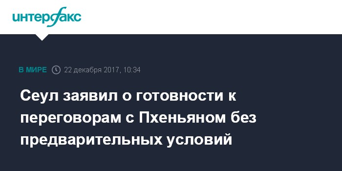 Сеул заявил о готовности к переговорам с Пхеньяном без предварительных условий